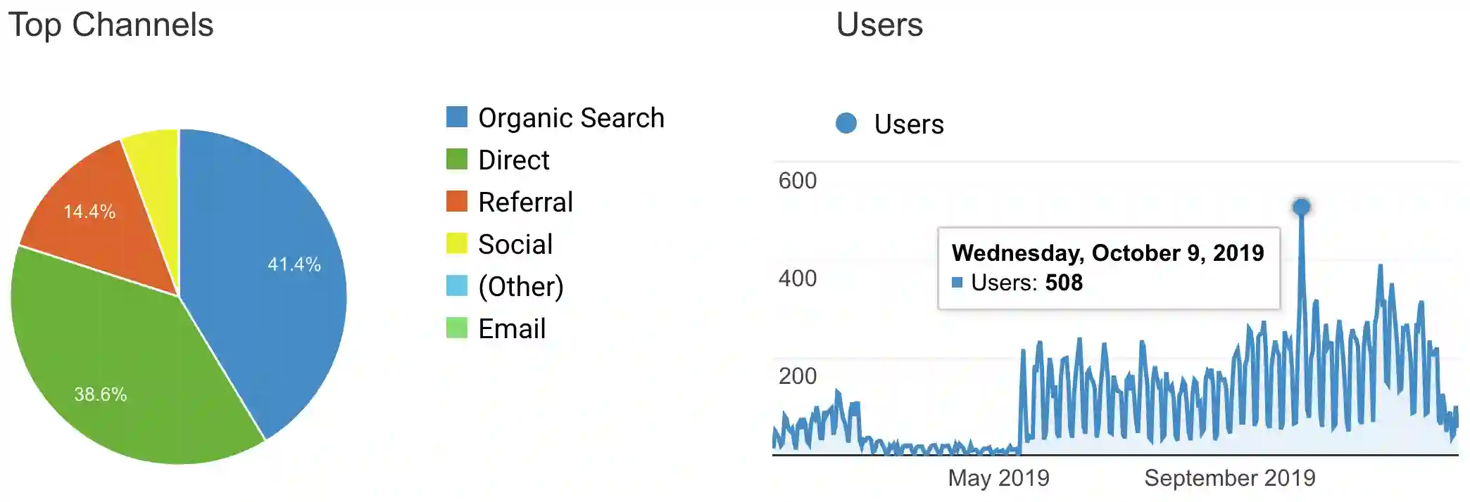 If we look closer to the statistics to check out how people learn about AsyncAPI, referral channels keep pretty much the same share of the pie, just numbers grow.